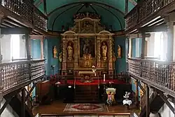 De part et d'autre du retable se trouvent les statues de la Vierge Marie sur le côté gauche et de Joseph à droite, portant l'Enfant Jésus.