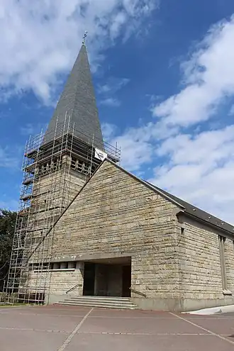 Le projet de reconstruction de Guy Pison entraîne une forte opposition locale. Un accord intervient en 1959 seulement et l'édifice est terminé en 1962, selon des plans d'un architecte saint-lois, Belin[1].