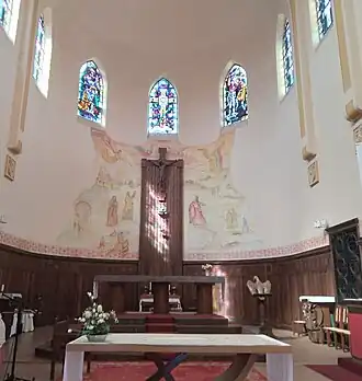 - ↑ Une église provisoire dont le bâtiment existe toujours, fut édifiée non loin de l'église actuelle.