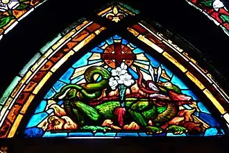 Le vitrail du chevet est réalisé en 1901 par les frères Tournel et représente la Crucifixion. Au-dessous sont représentés les quatre évangélistes avec leurs symboles habituels.