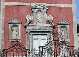 Les Carmes ne sont pas oubliés : à gauche et à droite de la porte d’entrée se trouvent les statues des deux saints principaux de l’Ordre du carmel, Thérèse d’Avila et Jean de la Croix. Parallèle à la rue de Fer, la rue qui passe à l’arrière de l’église (et où se trouvait l’entrée du couvent) s’appelle toujours 'rue des Carmes’.