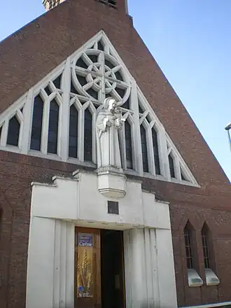 La statue en façade est l’œuvre du sculpteur Georges Serraz[6]. Elle représente Saint Joseph portant l'Enfant Jésus.