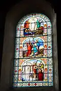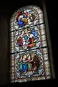 En entrant, côté droit, on remarque la verrière ayant pour sujet « Jeanne d’Arc écoutant ses voix » d’une remarquable exécution. C’est un don de M. et MM Armand Bourgeois–Coucin et de leurs trois enfants, en souvenir de leurs noces d’argent, avec la date . Dans la chapelle de la Vierge, même côté, sont deux verrières représentant l’une Jésus et les docteurs de la loi, l’autre les noces de Cana, sans autre indication.