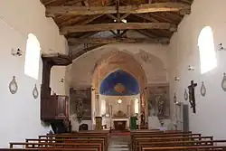 Au centre, l'abside est décorée d'une arcature surbaissée composée de trois arcs. Au-dessus de ces arcs se situe une galonnière de pierre où repose en cul de four un ciel bleu étoilé du XIXe siècle avec au centre un médaillon.