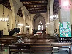 Composée d’un clocher placé sur la façade principale à gauche du portail d’entrée, l’église est à trois nefs plafonnées ("plafond à caissons"). Le plan adopté est dit "basilical", orienté. L'édifice comporte plusieurs chapelles annexes dont la chapelle dite "des Pénitents". Sa longue nef principale de quatre travées communique par de grandes arcades avec d'étroits bas-côtés. Sa surface cadastrale est de 1322 m²[10]. De ce fait la collégiale Saint-Julien est l'une des plus grandes églises catholiques de l'Ardèche du nord avec l'église Notre-Dame d'Annonay et la basilique de Lalouvesc[11].