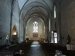 Une partie des voûtes de l'église s'est effondrée en 1810. L'autre partie est abattue. Comme l'écrit Charles de Montalembert à Victor Hugo en 1833[5] la voûte a été remplacée par un berceau en bois et en plâtre, la charpente rabaissée et les fenêtres sont bouchées. En 1869, une campagne de reconstruction rétablit le haut des murs qui permet la mise en place de la voûte d'ogives en brique[6].