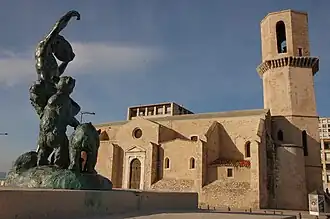 En 870, l'évêque Babon fait construire une enceinte fortifiée pour protéger la ville après les pillages sarrasins de 838[1],[2] et de 842, des razzias faisant suite à la Conquête musulmane de la péninsule Ibérique. À la fin du XIIe siècle ou au début du XIIIe siècle, la stabilité économique et politique enfin reconquise, l'église Saint-Laurent est édifiée à cet emplacement, en pierre de taille rose en provenance du cap Couronne.
