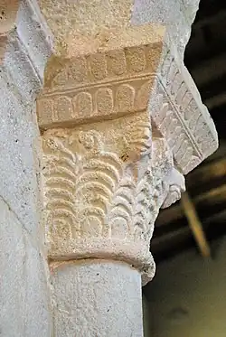 L'arc triomphal : La décoration des deux tailloirs est identique et simple : deux rangées de palmettes opposées.