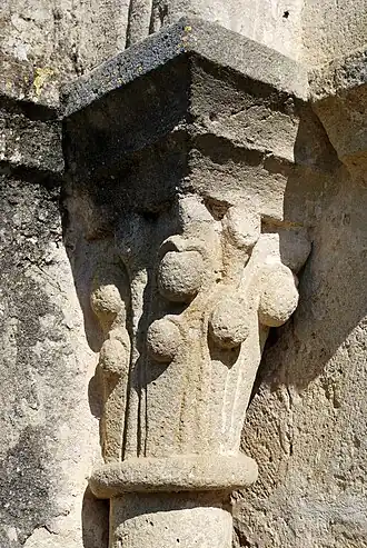 Chapiteau 1 : La corbeille du chapiteau porte un décor simple de fruits sphériques.