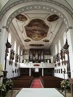 En 1768 l'église subit une rénovation majeure de son intérieur, durant laquelle les autels reçoivent des cadres en or et blanc. En 1830, lors d'une autre rénovation, le pignon ouest s'écroule. Les tribunes et une partie de la nef sont détruites. Lors de la restauration, un nouveau plafond plus bas et une tribune à deux étages sont construits. Dans la chapelle Nord, chapelle funéraire des Vöhlin, un incendie éclate en 1883 et endommage une partie des épitaphes dont certaines sont de style gothique tardif. La chaire, située près de la chapelle, brûle également. Deux nouvelles constructions sont ajoutées au chœur, au Nord et au Sud, en 1958-1960, sur des plans de Thomas Wechs.