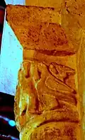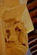 - Sur le tailloir, au-dessus de la tête de Jésus, brille l'étoile qui avait guidé les Mages. On voit également, parmi les rinceaux, deux autres spectateurs, un homme et une femme.