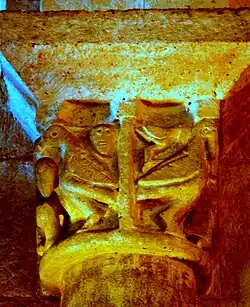 L'exposition des deux formes de tentation sexuelle était fréquent dans les églises romanes. Les hommes représentés sont probablement des clercs et ce chapiteau, situé au presbyterium était une mise en garde à leur intention.