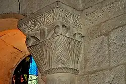 On trouve quatre chapiteaux romans à l'entrée du sanctuaire et deux chapiteaux autour la fenêtre axiale de l'abside.