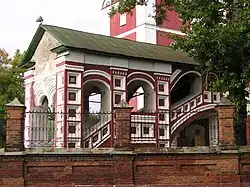 À l'angle nord-ouest, suivant la tradition à Iaroslavl, est adjointe à l'église une imposante tour qui sert de clocher, de plan carré à la base, surmonté d'un toit en forme de tente alternant avec les cinq bulbes suivant la tradition russe [2]..