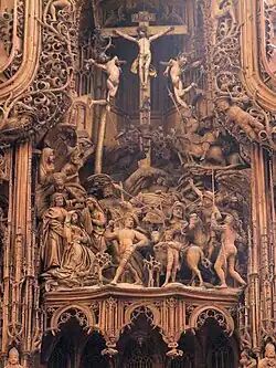 - Maître-autel : sculptures de Maître Arnt et de ses successeurs Jan van Halderen et Ludwig Juppe, tableaux de Jan Joest et de ses élèves.