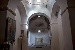 L'église possède un dôme de grande taille, une large abside, ainsi que des portes et des fenêtres de petite taille. À l'intérieur, l'église est initialement décorée de motifs géométriques et floraux, ce qui suggère que la décoration est réalisée pendant la période iconoclaste située entre le VIIIe et le IXe siècle. Le bâtiment de l'église est restauré à la suite du tremblement de terre de 1303 et décoré de peintures murales typiques représentant divers saints de l'église[1],[2].