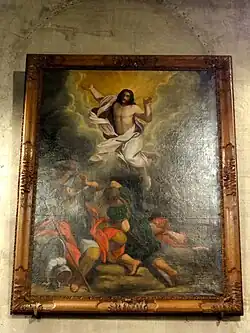 - Le tableau peint à l'huile sur toile représentant la résurrection du Christ est une œuvre de Louise-Hollandine de Bavière-Palatinat, princesse palatine de Bavière, abbesse de Maubuisson de 1664 à 1709. Le tableau a été peint en 1695, et porte les armes de l'abbaye de Maubuisson, d'où elle provient. La largeur est de 105 cm, et la hauteur de 178 cm. Le classement remonte à 1991 seulement, et une restauration est intervenue en 2003[20].