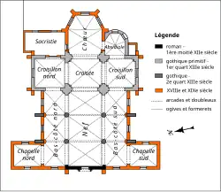 | Autres campagnes de travaux | 1re moitié XIIe siècle (portail) ; XVIe siècle (voûtes de la nef et des bas-côtés) ; 1837(chœur, deux chapelles) | ||