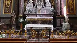 Le maître autel est en marbre rose, sur sa façade est représente l'Esprit-Saint.