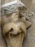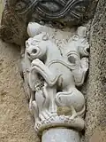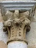 - N °18 : Un chapiteau assez médiocre inventé dans les années 1960 lors d'une restauration. L'original, retiré au siècle dernier, serait au musée des Beaux-Arts d’Agen. Il figure un homme et une femme enlacés[7]