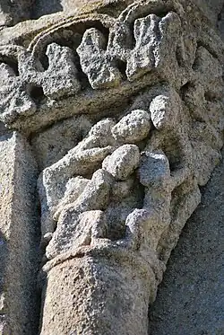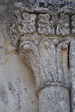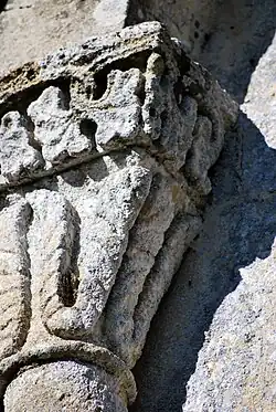 Les deux chapiteaux de la baie nord-est, qui sont romans, ont une décoration de feuillage au sud-est et un entrelacs de sarments au nord-ouest.