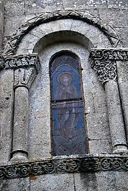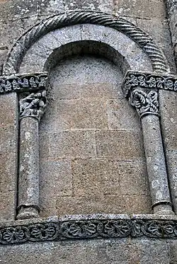 Le chapiteau occidental de la fenêtre est orné des feuillages entrelacés.