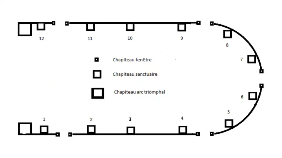 Les chapiteaux nos 4, 8 et 9 ne sont pas romans. Il est probable qu'ils datent du XVIIe siècle.