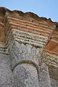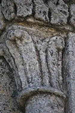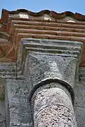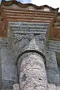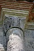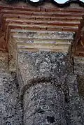 On trouve également neuf chapiteaux soutenant la corniche, avec décor végétal.