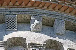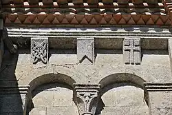 Sous la corniche, se trouvent 23 modillons sculptés dont aucun n'est figuré.