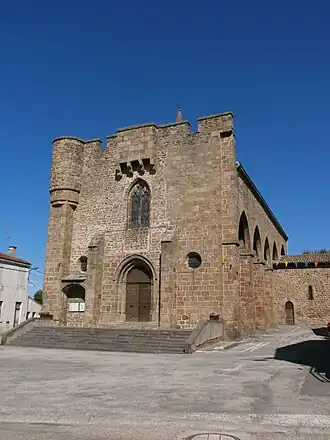 La façade a été fortifiée au XIVesiècle. Elle rappelle celle du Palais des papes d'Avignon. Elle comporte une échauguette d’angle, des merlons, une bretèche, et des machicoulis[2]. Ces éléments ont été plusieurs fois restaurés, et d'abord au XVIesiècle après les destructions des Guerres de Religion.