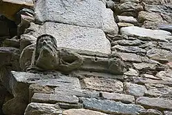 Sur l’un des piliers vers la nef, on peut observe deux sculptures : l’une représente une tête de vieillard barbu les bras croisés, l’autre une tête d’enfant.