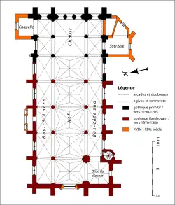 | Fin des travaux | années 1570 (reconstruction de la nef et des bas-côtés) | |||