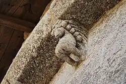 Les modillons sous la corniche sont assez rustiques : têtes de loup ou de monstre et dessins géométriques. On ne voit pas de leçon de moralité, comme à l'accoutumée.