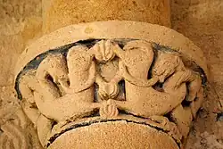 La composition est une copie d'un grand chapiteau de l'abbaye de La Sauve-Majeure.
