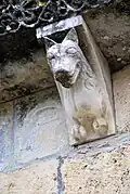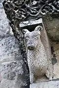 Les modillons du chevet : Les modillons du gouttereau nord portent l'empreinte du style gothique selon l'étude de Drouyn[4]. On trouve huit modillons : trois têtes couronnées, trois têtes sans attribut et deux animaux : un félin et un agneau crucifère.