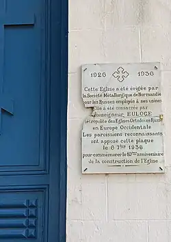 Le métropolite Euloge revient à Colombelles le pour fêter le 10e anniversaire de la création de la paroisse. C'est à cette occasion qu'une plaque commémorative est apposée à l'entrée de l'église[5].