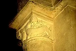 La corbeille du chapiteau nord de l'arc est décorée d'une frise d'entrelacs simples et une série de 'palmiers'.