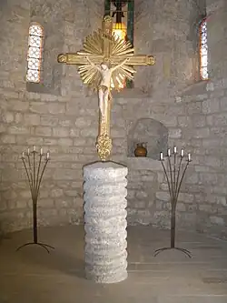 De surface réduite, elle occupait le chœur actuel. Les vestiges en sont les deux chapiteaux à crochets et l’autel wisigothique classé monument historique.