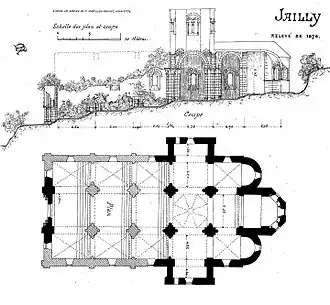 En 1876, l'architecte diocésain Massillon Rouvet (1847-1914) effectue un relevé de l'église de Jailly.