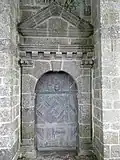 L'ensemble date des XVe et XVIe siècles, il regroupe l'église Saint-Sylvestre, l'ossuaire, le calvaire et la clôture de cimetière. L'ossuaire, daté du XVe siècle, est considéré comme l'un des plus anciens de Bretagne, et conserve une couverture dont les ardoises sont fixées par des chevilles en bois. Il comporte, à l'extérieur, une rangée de colonnettes supportant de petits arcs trilobés et, à l'intérieur, une voûte formée par une charpente lambrissée. Le chevet de l'église est du XVe siècle ; la nef, du XVIe siècle ; les lambris peints, du XIXe siècle[1].