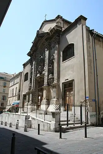 Ces moines Récollets s'établirent d'abord en 1619 dans le prieuré de Notre-Dame du Rouet, puis s'installèrent vers 1633 sur un terrain nommé le Coulet de Saint-Jérôme situé à cette époque à l'extérieur des remparts médiévaux et compris entre les rues d'Aix, des Dominicaines, des petites Maries, Bernard Dubois et de La Fare où ils construisent un des plus importants couvents de leur ordre. L'église connue à l'époque sous le vocable de saint Louis roi de France et de saint Antoine de Padoue est consacrée le par Étienne de Puget, évêque de Marseille[2]. Autour de l'église se développent les cloîtres du couvent et les annexes.