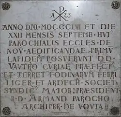 - Pose de la première pierre (). La nouvelle église sera construite grâce à la générosité de la Compagnie des fonderies et des forges de la Loire et de l'Ardèche.