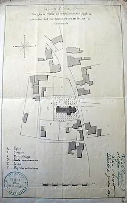 - On ne dispose pas de représentation de l'église à cette époque. Cependant, le plan cadastral de 1833 donne le plan : un bâtiment dépourvu de transept avec un chevet arrondi ; une tourelle et un porche (l'entrée se faisait au nord) sont greffés sur l'élévation nord, tandis qu'une sacristie était construite sur la façade sud ; sa situation par rapport au cimetière et le bourg. L'église était entourée du cimetière jusqu'au milieu du XIXe siècle.