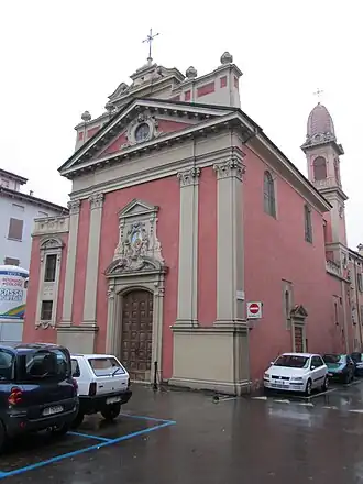 L'église est mentionnée par écrit en 1302. Elle est entièrement reconstruite en 1763[2] par Gian Battista Cattani dans le style baroque ; mais la façade et le campanile sont refaits en 1929.