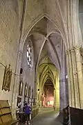 Du XVe siècle nous parvient une charpente apparente qui couvre la nef et le chœur. Quatre travées d'un cloître situées au sud, et le long des bas-côtés datent également de cette période.