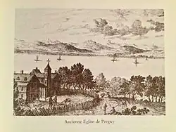 - ↑ Depuis 1685, l'église est affectée au culte catholique romain. De plus, la majorité de la population pregnote est de confession catholique romaine.
