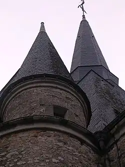 - ↑ Visitant le clocher en 1607, Antoine Ravault, maître charpentier, déclare qu'il ne peut être consolidé et qu'il faut réédifier un petit clocher, seulement de 40 pieds d'éguille, accompagné par le pié d'un dosme, pour oster la forme de grosseur du pied.