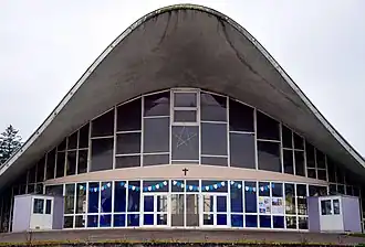 L'église tout entière est coiffée d'une voûte en béton imitant la forme d'une selle de cheval, soutenu uniquement par deux piliers latéraux. L'ensemble des parois de l'édifice sont vitrées, ce qui permet à la lumière d'entrer de toute part, et symbolise selon l'architecte l'ouverture vers l'extérieur de l'église[1].