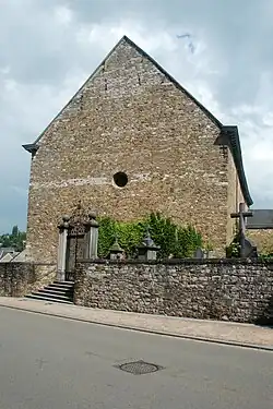 - une église romane de la fin du Xe siècle ou du début du XIe siècle[1], dotée d'un petit chevet rectangulaire et d'une tour à l'ouest[4]