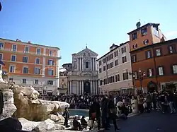 L'église Saint-Vincent-et-Saint-Anastase est bâtie de 1646 à 1650 selon les dessins de Martino Longhi le Jeune (en) (1602-1660) à l'emplacement d'une église du Xe siècle Sant'Anastasio de Trivio. Elle est commandée par le cardinal Mazarin qui se fait représenter en buste sur la façade, ainsi que sa nièce, Marie Mancini, en mascaron[5].